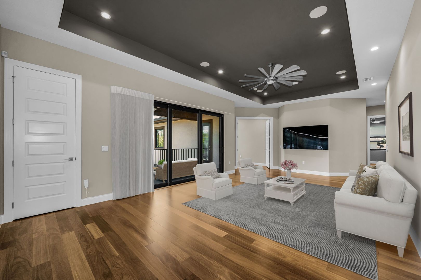 One or more photos are virtually staged. Experience elevated living in the highly sought-after Champions Club community of Trinity. Perfectly positioned along the 2nd hole of Fox Hollow Golf Club, this exceptional estate blends luxury, comfort, and sustainability with breathtaking golf course views.