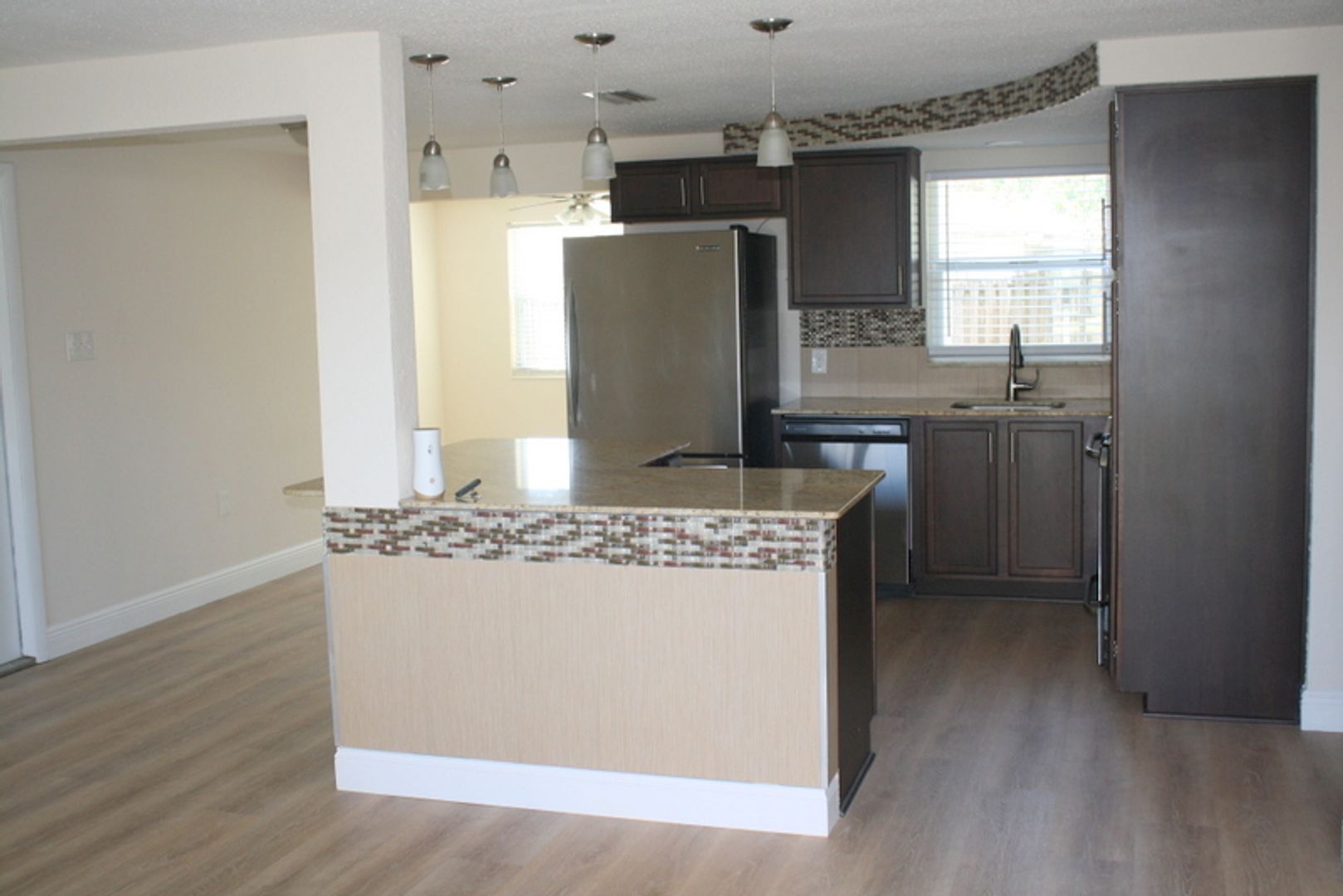 This Home has a beautifully updated Kitchen and nice laminate throughout. 2 bedroom and 1 bath home with a den/office and a screened in lanai. Completely fenced in and ready to go. Convenient to shopping and Restaurants.